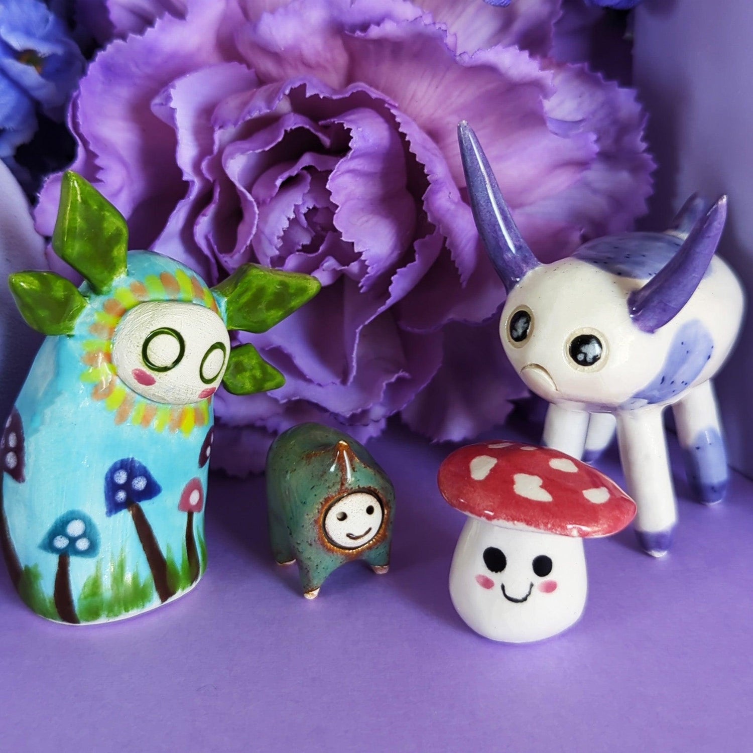 At Politely Declining, you can find handmade ceramic figurines of all shapes and forms. From the long and pokey antlers of Cosmic Deer to the soft cap of Myris the little mushroom, your new ceramic friend is waiting for you.
